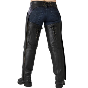 Whether you're hitting the open highway or need reliable protection for everyday rides, these black leather chaps deliver. Pair them with your favorite jeans and boots for a bold American biker look.